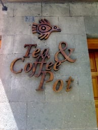 Rótulo corpóreo exterior con patina de hierro corten oxidado